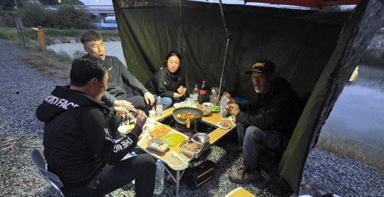 자정 무렵 야식을 끝내고 나니 추위가 점점 심해졌다. 낚시텐트 없이는 밤을 샐 수 없을 것 같아서 가스난로를 챙겨 본적격인 가을 밤낚시에 돌입했다. 새벽 1시부터 5시까지 꾸준한 입질을 받으며 낚시했지만 씨알은 모두 비슷해 형제 붕어들 같았다.