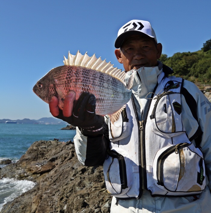 지난 10월 30일에 찾아간 남해도 홍현 갯바위. 도보로 진입할 수 있으며 40cm급 감성돔이 잘 낚이고 있다.