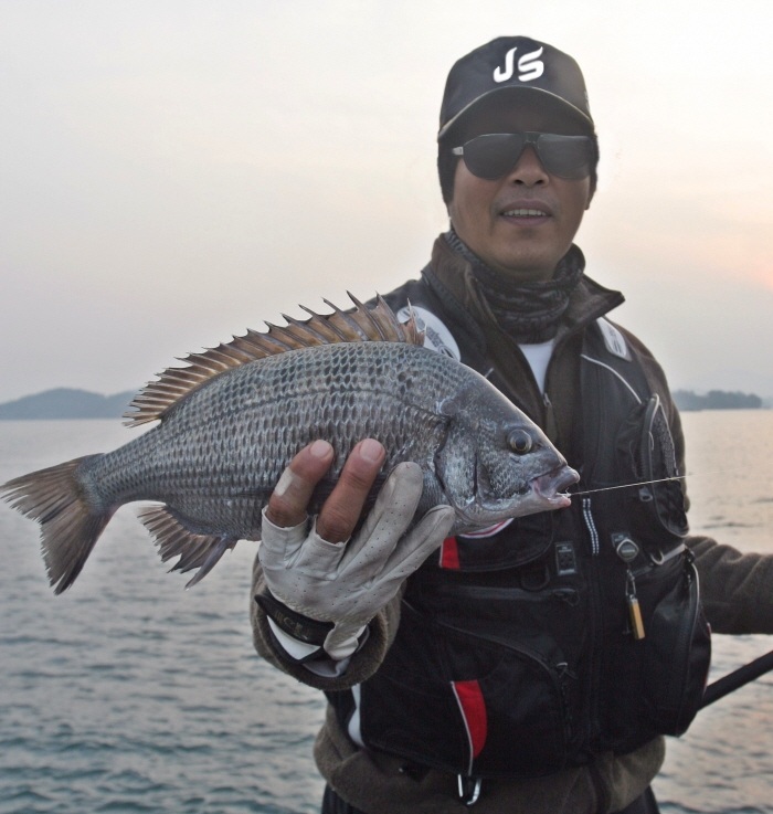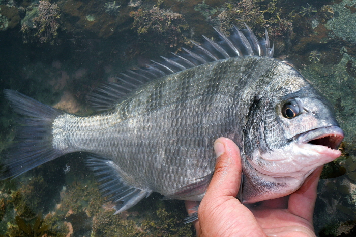 김영규 씨가 낚은 감성돔. 40cm에 살짝 못 미치는 씨알이다.