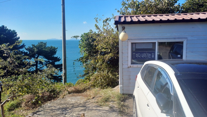 내비게이션에 ‘남해군 남면 홍현리 산320-3’번지를 입력하면 도착하는 주차장. 좌측에 진입로가 있다.