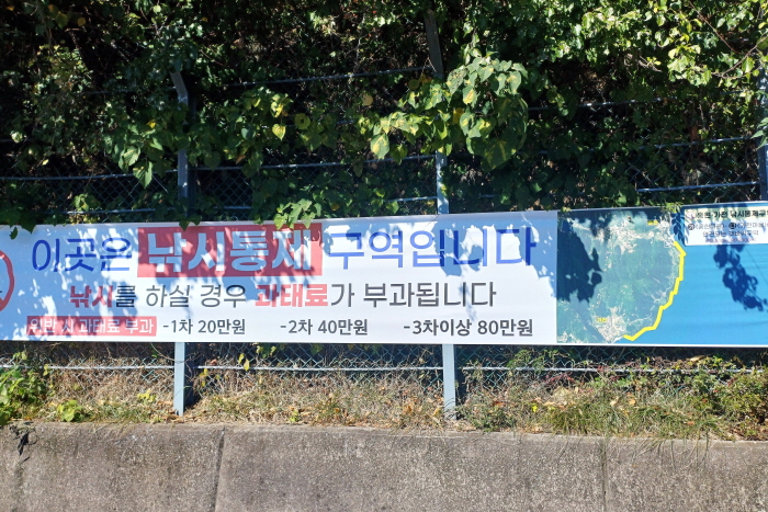 가천마을에 붙어 있는 낚시금지 안내 현수막.