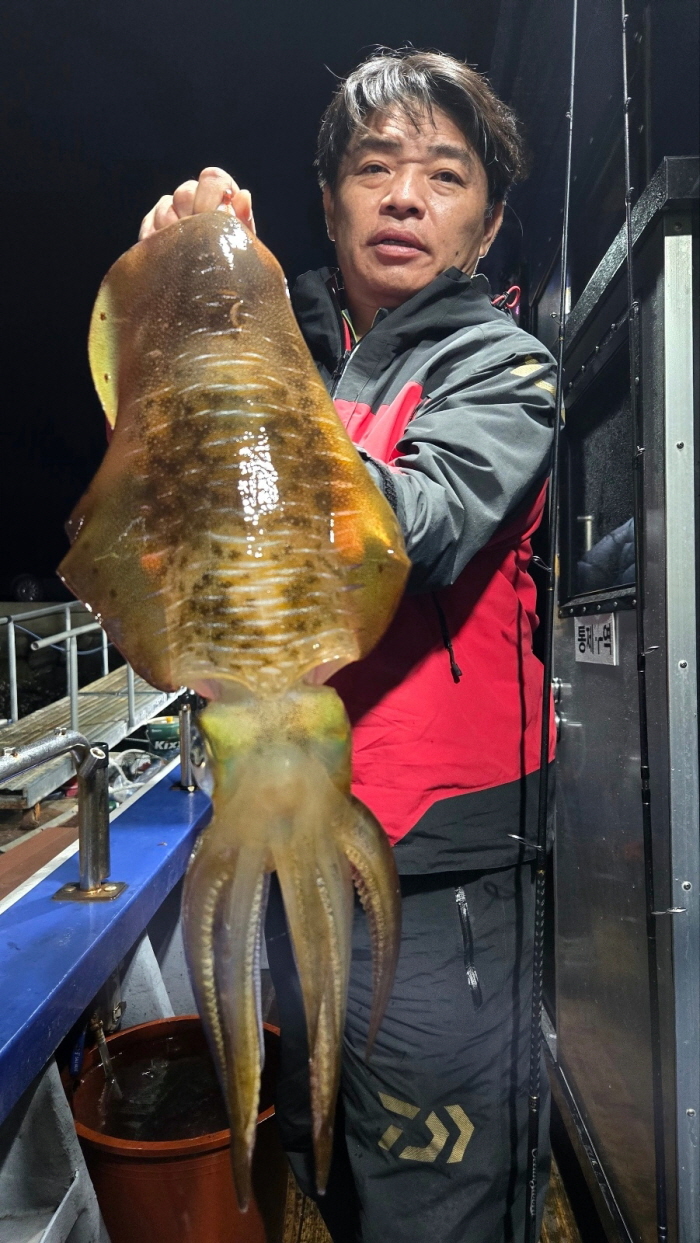 킬로 오버 무늬오징어를 낚은 허형갑 씨.