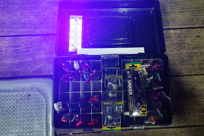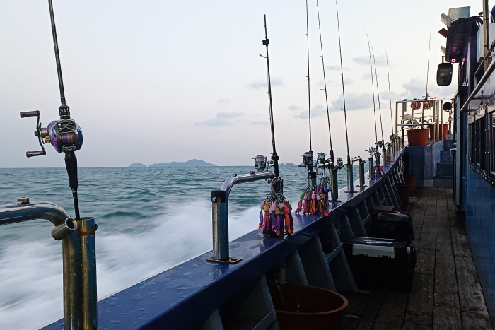 고성~통영에서 에깅 마니아로 통하는 박종경 씨, 그와 함께 에깅을 즐기는 전하윤, 허형갑 씨와 갈도로 팁런을 나가기로 계획했다. 24일 오후 4시, 통영시 인평항에서 출항하는 통영뉴그린피싱에 승선 후 채비를 마치고 주변을 둘러보니 서서히 어둑해졌다. 오후 5시 정각에 출항, 통영 내만을 벗어나 연화도를 지나자 파도가 높게 치고 있었다. 바람도 강해 파도가 낚싯배로 들이쳐 통로에 꽂아둔 장비가 모두 물에 젖었다. 갑작스레 변한 날씨 탓에 갈도행을 포기하고 선장은 욕지도와 노대도 일대로 뱃머리를 돌렸다.