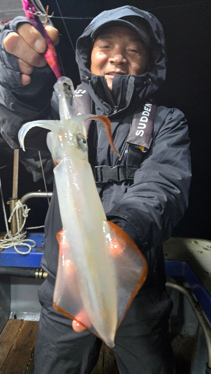 출조 첫날 킬로급 무늬오징어를 낚은 허형갑 씨.