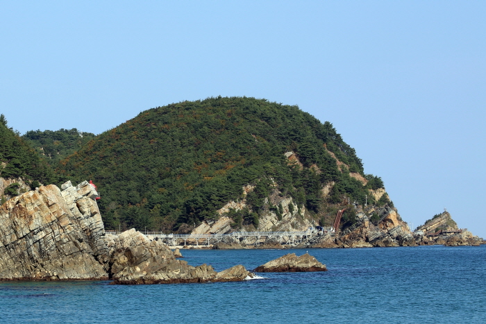 추암해변산책로. 일부 구간은 현지인들이 출입해 에깅을 즐기기도 한다.