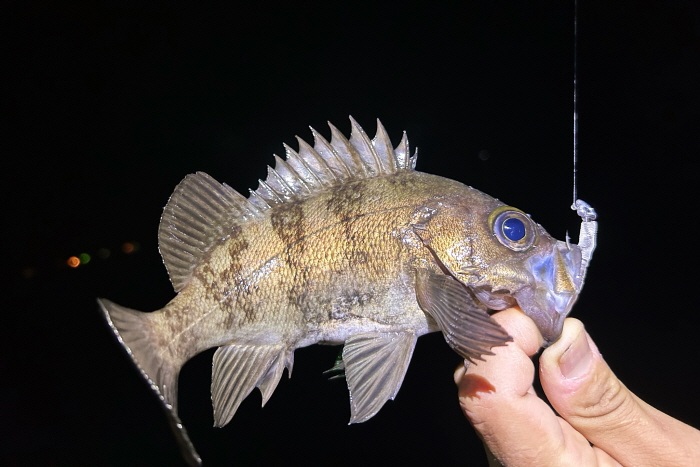 썰물이 흐르기 시작한 상황이라 채비가 교각 주변에서 금방 떠내려갔다. 지그헤드의 무게를 3g으로 올리니 교각을 벗어나지 않았고 첫 볼락을 만날 수 있었다. 곧이어 여용군, 강문석 씨도 볼락을 낚았는데 20cm 내외로 씨알이 굵었다.