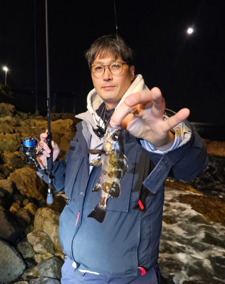 여용군 씨는 “이 주변에서 제일 좋은 포인트는 교각 주변입니다. 채비를 교각에 바짝 붙여 캐스팅한 후 지그헤드를 바닥까지 가라앉혀 끌어주어야 볼락이 입질을 합니다. 전망대 불빛이 밝아서 베이트피시가 잘 모이지만 불빛으로 인해 볼락의 경계심도 강해서 중상층에서는 잘 입질하지 않습니다”라고 말했다.