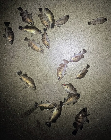 청사포 갯바위에서 거둔 볼락 조과. 금방 마릿수 조과를 올릴 수 있었다.