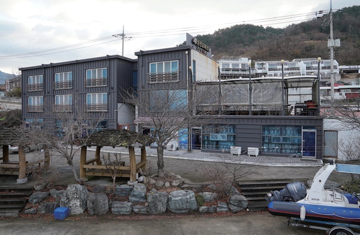 삼천포마리나펜션. 총 3층이며 바비큐장과 연결돼 있어 편리하다