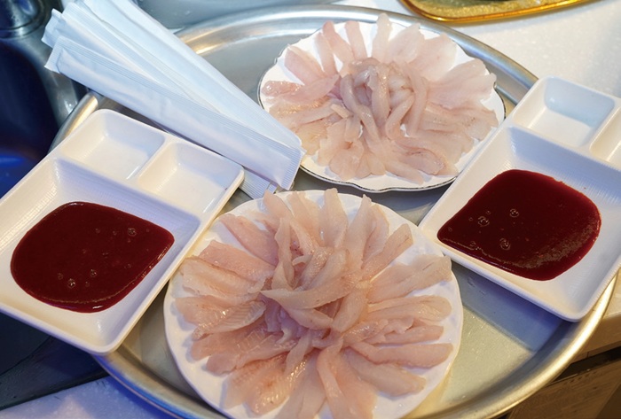 체험낚시로 낚은 쏨뱅이로 만든 회.