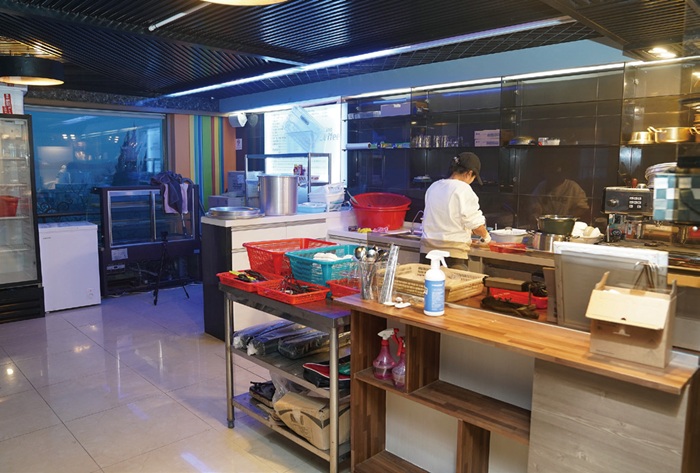 바비큐장은 2층이며 펜션과 연결돼 있다. 저녁식사 시간이 되면 관리인이 숯불을 붙여주고 준비한 고기를 내어준다. 함께 먹을 샐러드와 밥찬은 셀프로 이용하면 된다, 바비큐장과 함께 있는 주방에 조리에 필요한 모든 용품이 완비돼 있어 편리하다.
