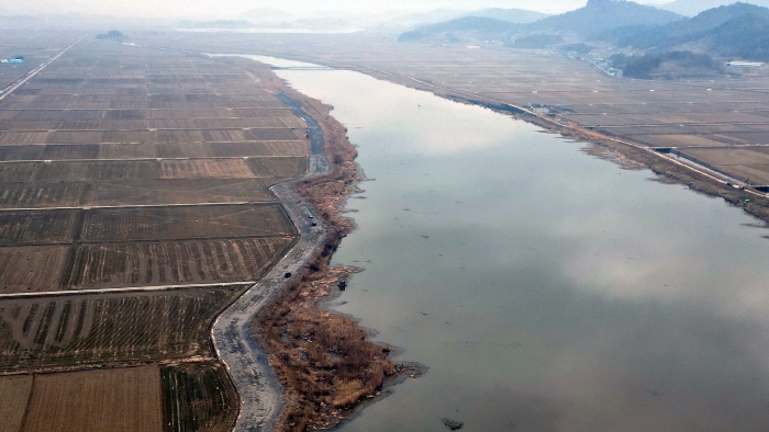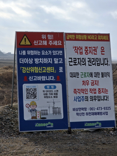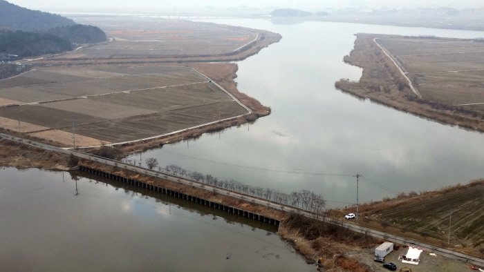 이 공사는 지난 2021년 집중호우로 제방이 유실되며 대규모 농경지를 침수시켰던 사고 이후 시작됐다. 지방하천 정비사업으로 지난해부터 시작했다고 한다.