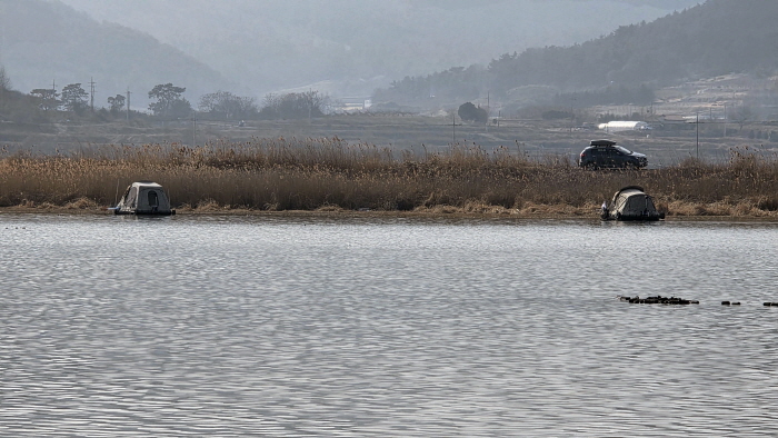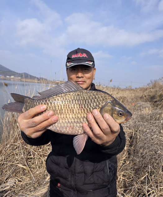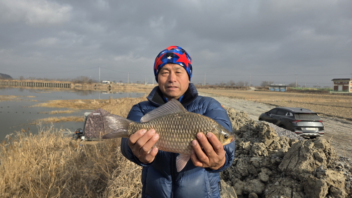 이날은 출조 후 처음으로 기온이 영상 10도까지 올랐고 바람도 거의 없어 최고의 여건이었다. 그래서일까? 약간 상류에서 낚시하던 신성철 씨가 오후 3시 무렵 37.5cm의 대물 붕어를 낚았다. 준척급도 몇 마리 올렸다고 알려왔다. 대낮에 붕어가 나왔고 다음날 아침까지 바람도 없고 포근한 날씨가 이어진다기에 기대가 커졌다.