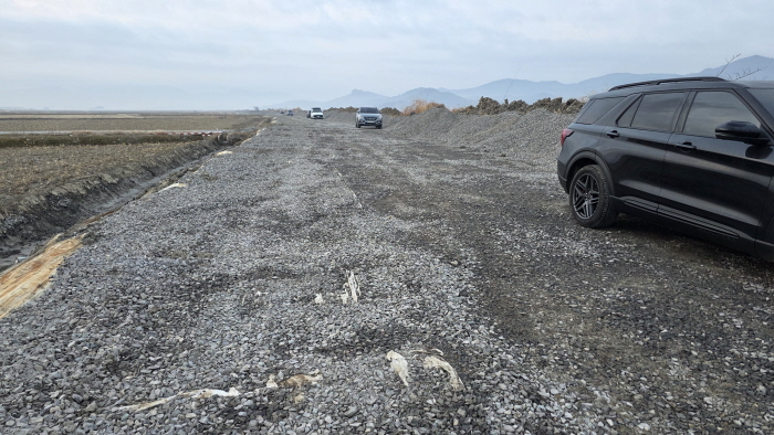 하천재해예방사업으로 도로 나고 자갈 깔려