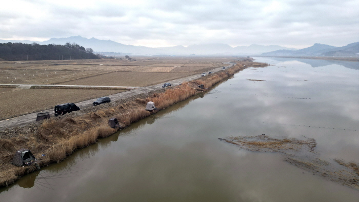 자갈이 깔린 길을 따라 조금 올라가니 전기훈 씨가 마중 나와 있었다. 공사가 중단된 덕에 우리 낚시인 입장에서는 좋은 점이 많아졌다. 일단 포인트 접근이 쉬워지고 앉을 자리도 많아 선택의 폭이 넓어졌다.