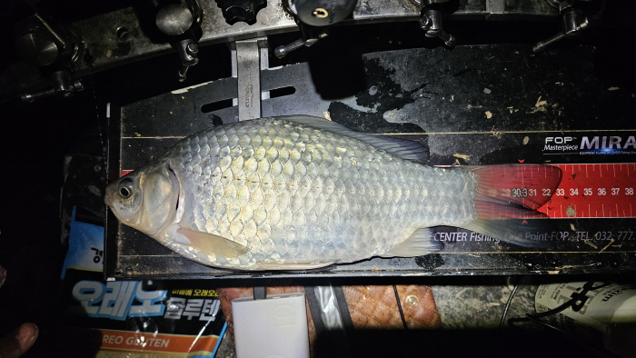 희망이 보이자 필자는 30분 간격으로 글루텐을 교체하며 부지런히 밑밥질을 이어갔다. 1시간 뒤 5.0칸 대에서 찌를 살짝 끌고 가는 입질이 들어왔다. 이번에도 31.5cm의 당찬 월척이 인사를 건넸다. 이후 새벽까지 4.8칸에서 5.2칸 사이의 긴 대에 1시간에서 1시간 30분 간격으로 꾸준하게 입질이 쏟아졌다.