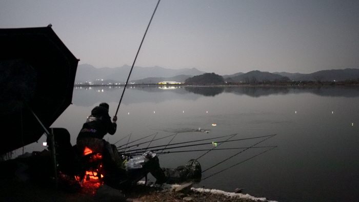 연안은 수심이 얕아 바닥이 훤히 보였기에 긴 대 위주의 대편성이 필수였다. 4.0칸(수심 1m)부터 5.2칸(1.4m)까지 총 9대를 펴고 조과보다는 ‘밤낚시를 할 수 있다는 사실’을 위안 삼으며 글루텐 미끼를 달아 던졌다. 죽암수로는 블루길의 성화가 심해 평소 글루텐 낚시가 주를 이룬다. 그래서 글루텐에 길들여진 이유로 겨울에도 글루텐이 잘 먹힌다.