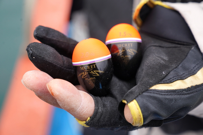 윤화열 씨가 사용한 푸가의 시크릿 구멍찌. 수심이 8~10m 수준이라 1~1.5호면 충분했다.