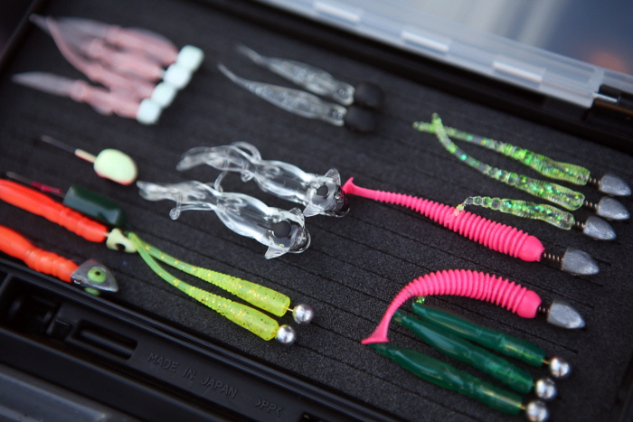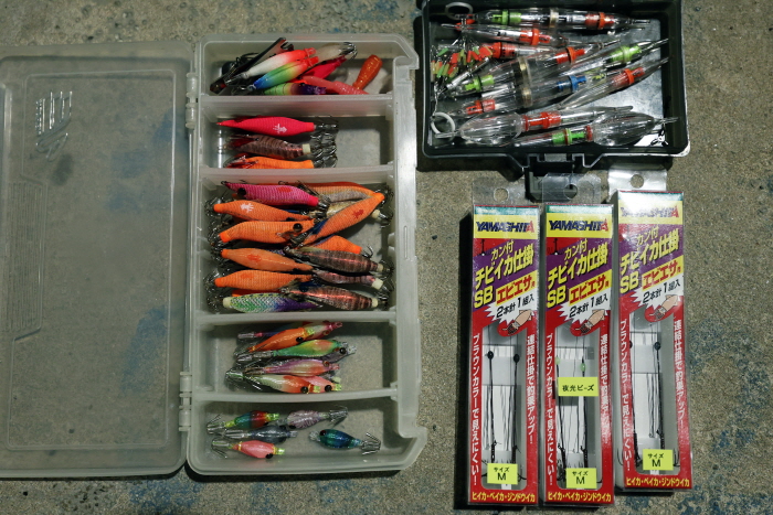 박상욱 씨의 호래기 루어낚시 소품. 집어등, 에기, 스테, 바늘 등을 사용한다.