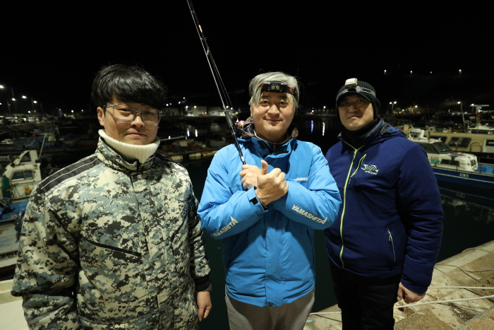 가덕도 현장 취재를 함께한 낚시인들. 좌측부터 최문기, 박상욱(야마시타 필드스탭), 최문기 씨.
