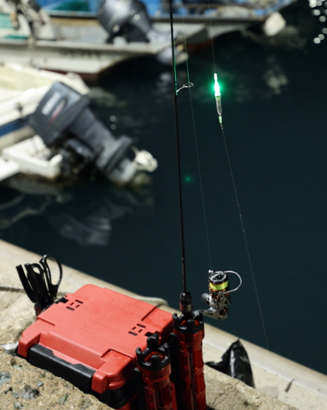 먼저 최문기 씨가 낚은 전어부터 확인했다. 길이 5m 찌낚싯대(엔에스 클로저 1.25호)에 1호 막대찌, 1호 수중찌로 채비하고 카고를 연결한 후 15단 전어 전용 카드채비(금호조침)를 사용했다. 캐스팅에 익숙하지 않으면 10단, 능숙하다면 20단까지 쓴다고 한다. 카고에 벵에돔용 밑밥을 조금 넣고 캐스팅하는데, 바늘에는 미끼를 달지 않는다. 입질이 오면 막대찌가 물속으로 들어가기도 하지만 대부분 찌가 솟거나 드러눕는 형태가 많다고 한다. 낚아 놓은 전어는 평균 25cm 정도. 해가 진 후 바람이 불기 시작해 입질이 뜸했지만 초저녘부터 시작해 자정까지 낚시하면 보통 20마리 정도 낚을 수 있다고 했다.