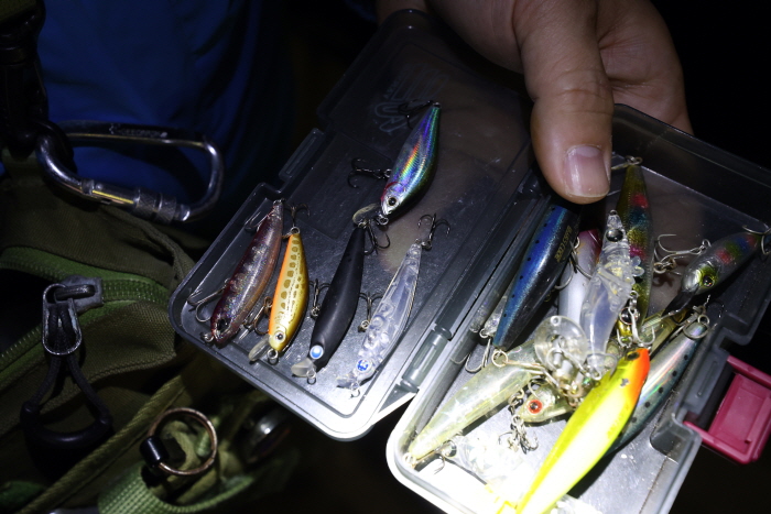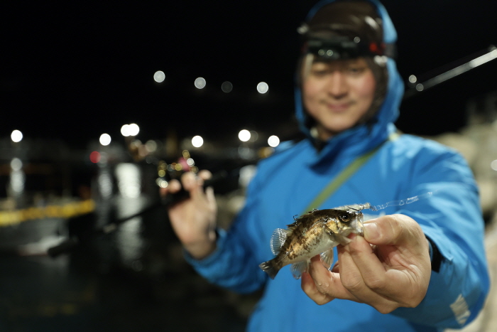 박상욱 씨는 소형 하드베이트로 볼락을 노렸다. 웜 채비도 효과가 좋지만 잔챙이가 너무 자주 입질해 최근에는 하드베이트를 더 많이 쓴다고. 박상욱 씨는 길이 5cm, 무게 6g 내외의 투명 컬러 미노우를 선호하는데, 몸통이 슬림할수록 볼락이 잘 반응한다고 했다. 가로등 아래에 서서 그림자가지는 곳, 해초가 무성한 곳을 미노우로 훑으니 금방 입질이 들어왔고 낚이는 씨알은 20cm 이하가 대부분이었다.
