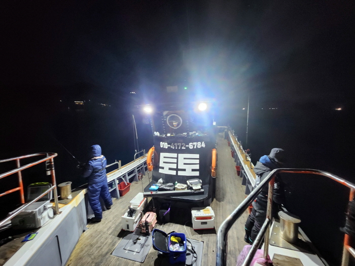 미조항에는 볼락낚시 전문 낚싯배 토토호가 우리를 기다리고 있었다. 탑승 후 선장님께 간단한 브리핑을 듣고 각자 채비를 점검했다. 채비도 채비지만 특히 방한장비를 신경 썼다. 바다 바람이 칼처럼 파고드는 겨울에는 체온이 떨어지면 집중력이 흐트러지고, 집중력이 떨어지면 볼락의 미세한 입질을 놓치기 때문이다.