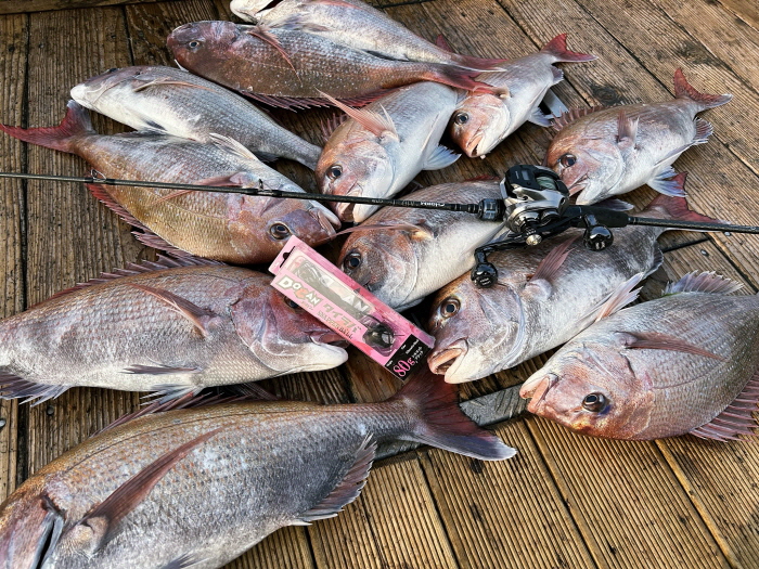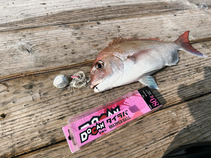 이튿날에는 라팔라가 출시한 완제품 타이라바 ‘고모쿠 도칸타이라바’를 주로 사용했는데 날카로운 바늘을 사용해 작은 참돔의 입집도 놓치지 않은 것이 도움이 되었다. 참돔의 흡입력이 약한 상황에서도 바늘이 확실히 관통되며, 참돔의 바늘털이도 많이 줄일 수 있었다.