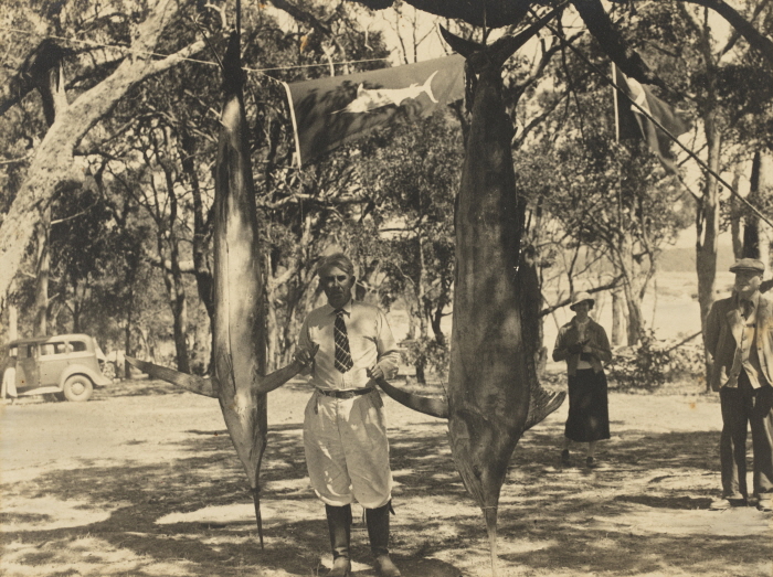 1936년 호주 버마구이(Bermagui)에서 청새치(Striped Marlin)를 낚은 Zane Grey.
