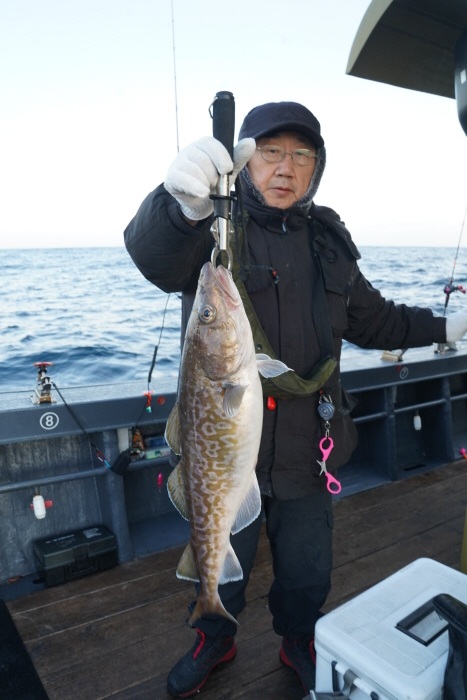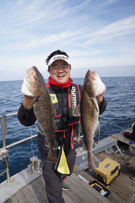 굵은 씨알의 대구를 낚아올린 낚시인. 평균 70cm급이 주로 올라왔다.
