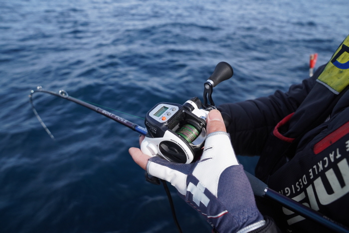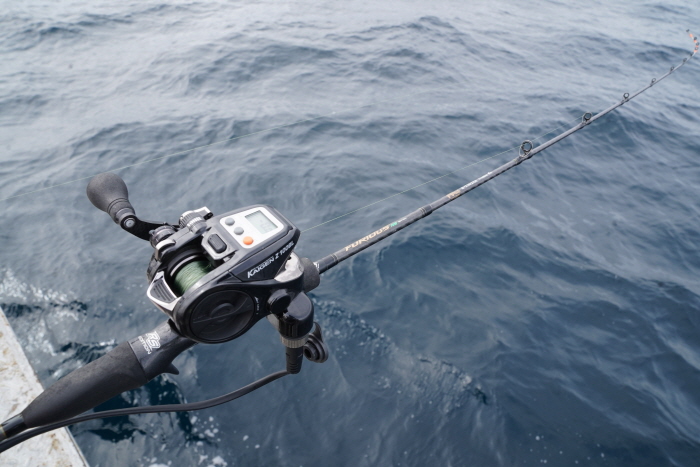 바낙스의 카이젠 Z150W 전동릴로 대구라바를 즐기는 장면. 바낙스의 소형 전동릴은 보조스풀을 추가로 주기 때문에 활용도가 매우 높다.