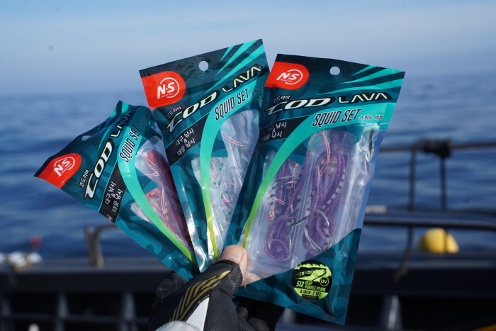 엔에스에서 출시한 코드라바 스퀴드 세트 채비. 바늘과 웜 일체형 채비로 인기를 끌고 있다.