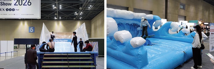 실제 서핑을 체험할 수 있는 공간을 마련해 많은 관램객이 이용했다. / 에어서프바운스 체험장.