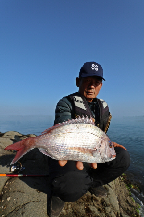 하지만 낚시를 그만 둘 수도 없는 노릇이라 ‘눈 먼 감생이라도 걸려라’는 심정으로 밑밥을 대량으로 쏟아 부으며 낚시를 이어갔다. 하지만 잡어만 더 꼬일 뿐 상황은 나아지지 않았다. 시간이 흘러 들물이 흐른 뒤에야 상황이 나아졌다. 뻘물이 서서히 걷히는 듯했고 김영규 씨가 입질을 받았다. 이번에는 분명히 감성돔일 것이라고 생각했지만 참돔이 올라왔다. 숭어 지나간 뒤에 참돔이라니… 지금이 씨알 굵은 감성돔이 낚이는 겨울 시즌이 맞나 싶었다.