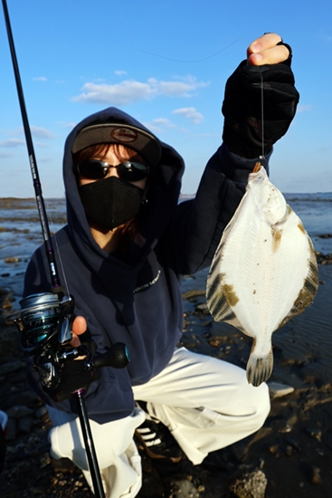 우리는 회야강 최하류에 있는 명선교 아래에 자리를 잡았다. 바닥이 모래로 이뤄져 있었는데, 이미 많은 낚시인들이 도다리(문치가자미 또는 참가자미) 원투낚시를 즐기고 있었다. 낚시인의 아이스박스를 보니 작은 문치가자미가 낚인 것을 확인할 수 있었다.