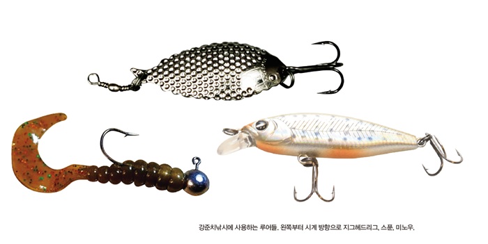미노우는 빠른 릴링 혹은 트위칭과 저킹 등 다양한 액션을 만들어 주면 강준치의 반응을 빠르게 이끌어낼 수 있다.
