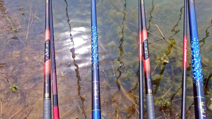 빨간 낚싯대는 은성 DHC 대물조선범, 파란 낚싯대는 은성 조조맥스다.