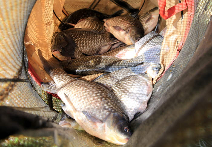 완도호에서 필자가 낚은 조과. 35cm부터 42cm까지 월척 붕어 20마리를 낚았다.