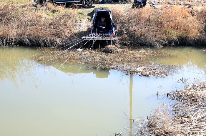 접근성 좋은 상류 수로에 낚시인 몰려