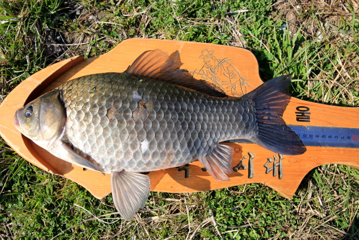 체고가 높고 비늘이 깨끗한 완도호 월척 붕어.