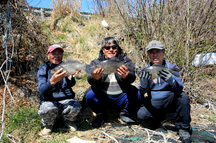 또한 방조제에서 봤을 때 우측 상류에 있는 배수장 주위에도 많은 낚시인이 있었는데 이곳 역시 접근성이 좋았다. 완도호에서 만난 현지인 원종국, 이경민, 이태완 씨도 이곳에서 낚시하고 있었다.