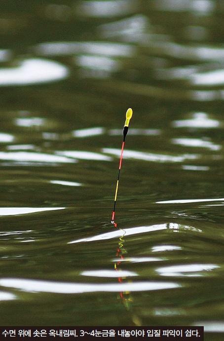 ②배스터. 배스가 서식하고 있는 저수지의 붕어는 입질이 매우 약한 특성을 보이는데 이런 곳에서 옥내림낚시가 효과를 본다. 투박한 대물 채비에는 이물감을 느끼는 것이다.
